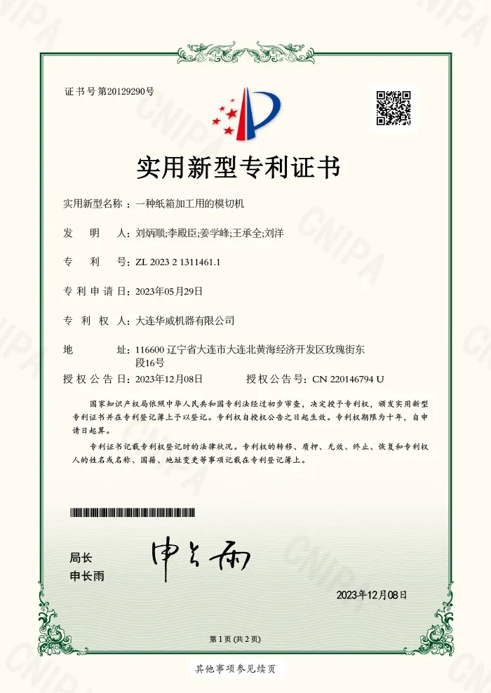 ООО Далянь Хуавэй Машин расположено по адресу: пров. Ляонин, г. Далянь, пр. зона экономического развития Далянь Северная Жёлтого моря, ул. Мэйгуйцзе, Восточный участок, д. 16, занимая площадь 66 700 квадратных метров с общей площадью зданий 71 800 квадратных метров. Это специализированный производитель, занимающийся исследованиями и разработками, проектированием и производством плоских высекальных прессов, фольгировальных прессов и прессов для глубокого тиснения. Хуавэй Машин является компанией с глубокими корнями и широким влиянием в упаковочной машиностроительной отрасли, посвятившей себя предоставлению высококачественных упаковочных решений для глобальных клиентов.